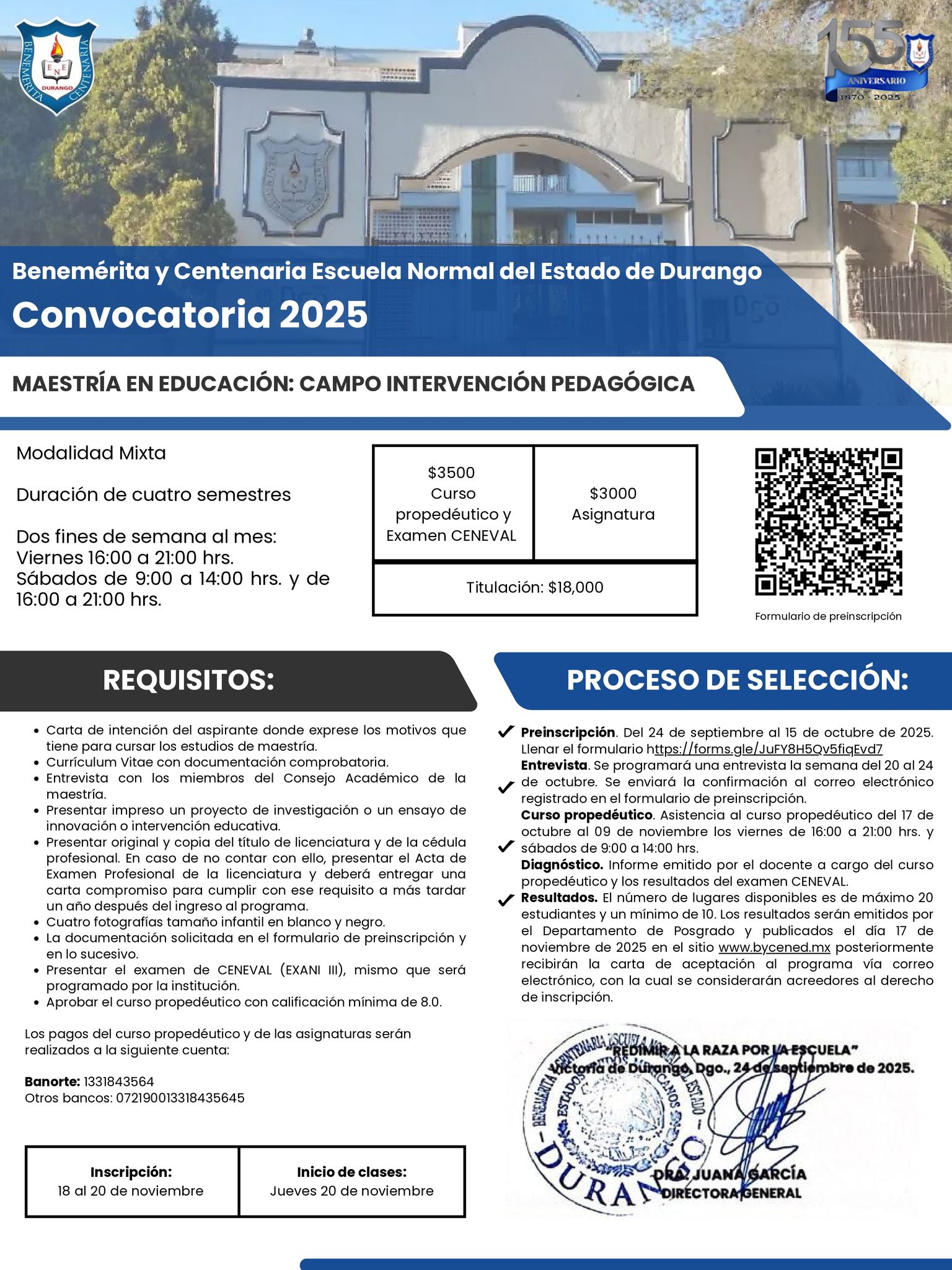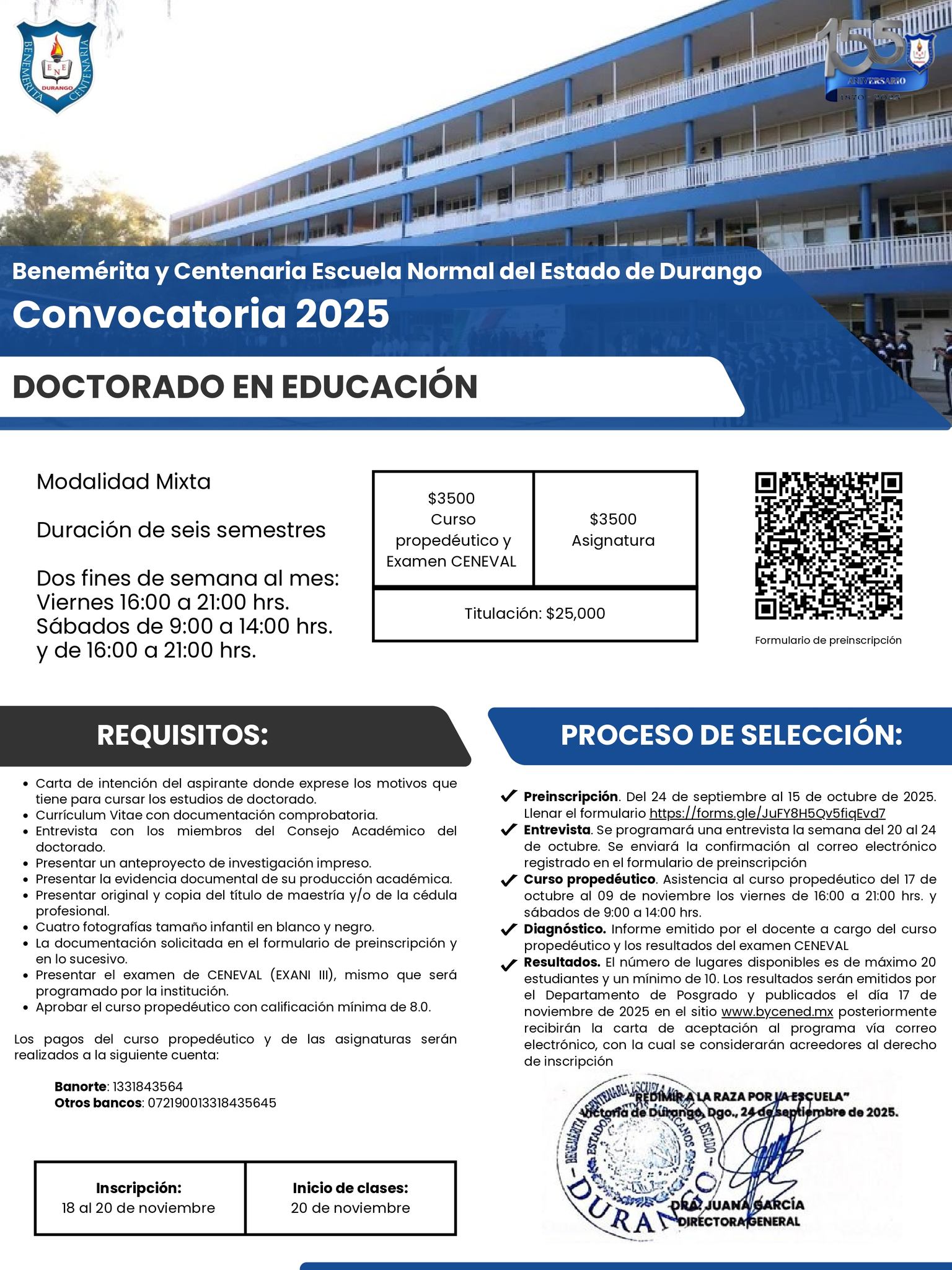 La Benemérita y Centenaria Escuela Normal del Estado de Durango te invita a formar parte de nuestros programas de Posgrado: